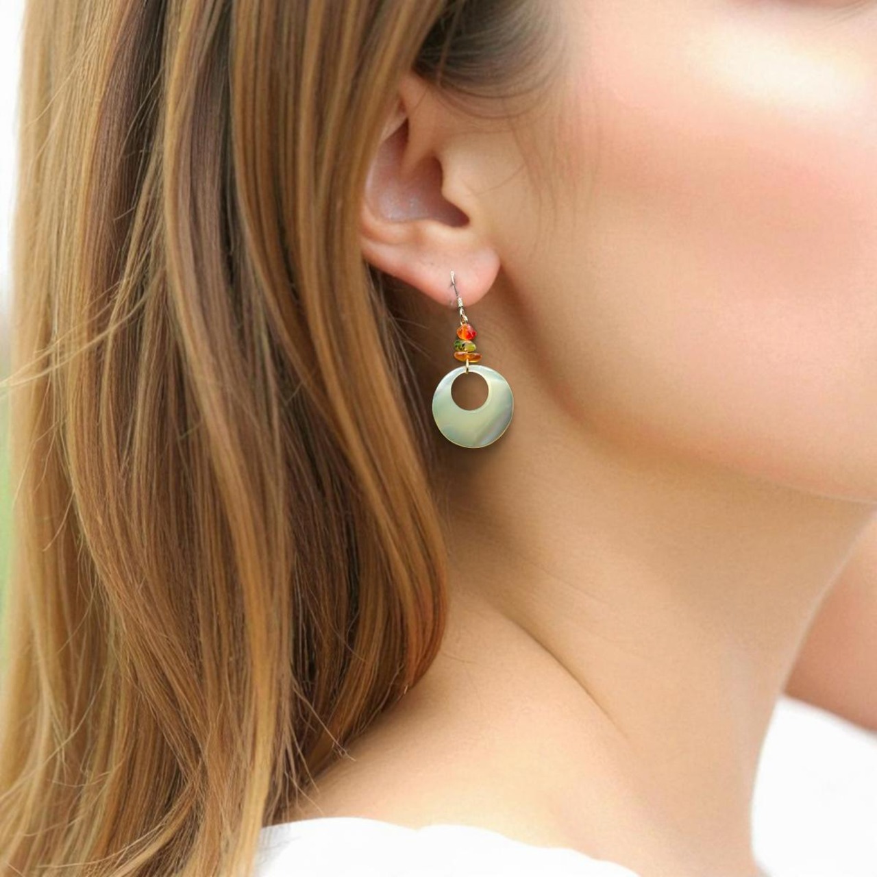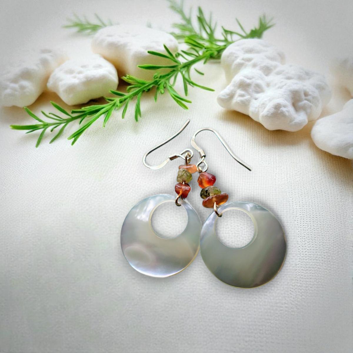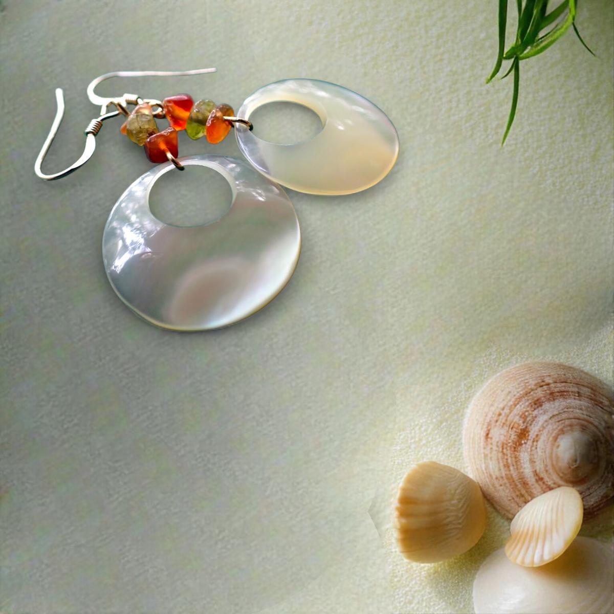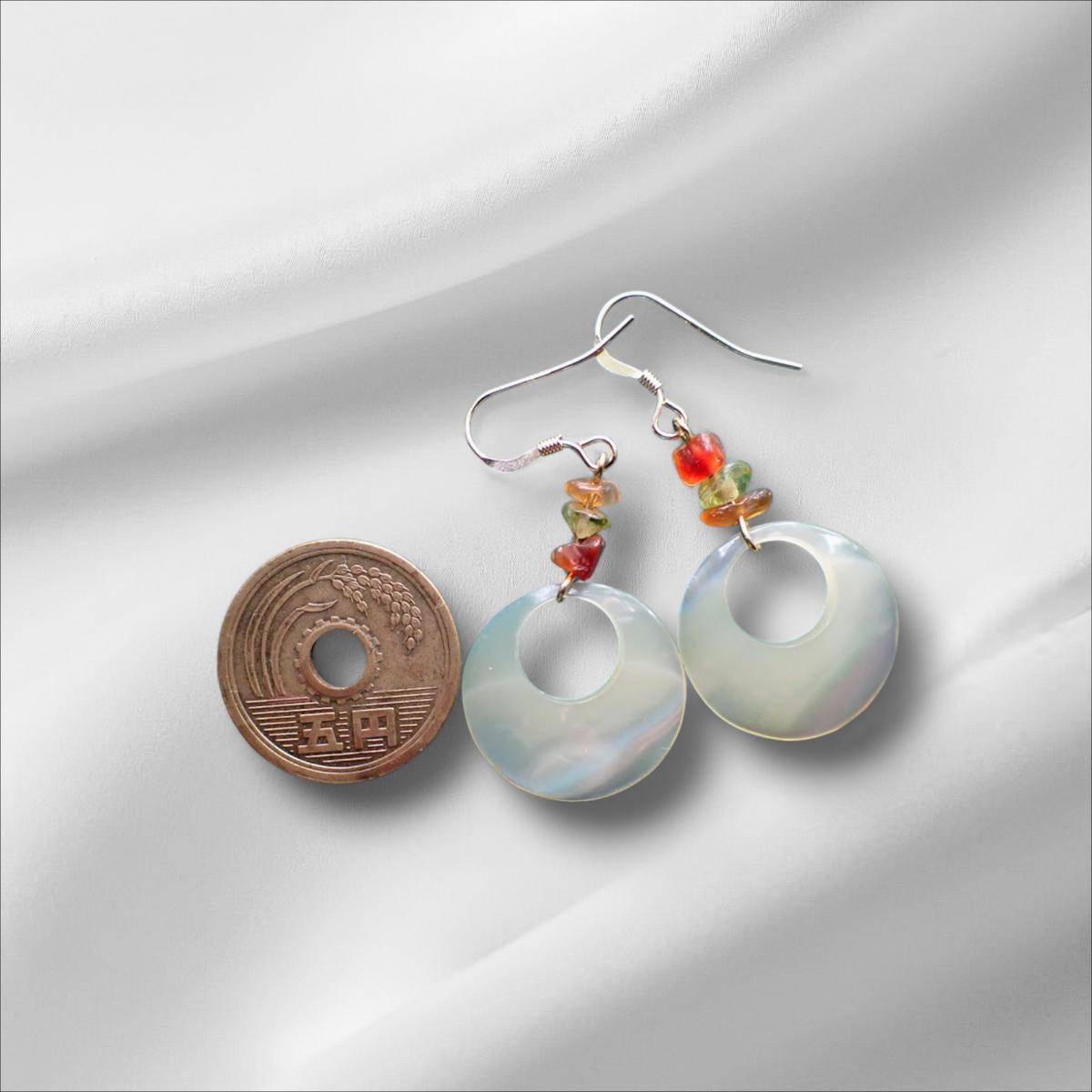 自然の光をそのまま閉じ込めたような夜光貝のピアス。